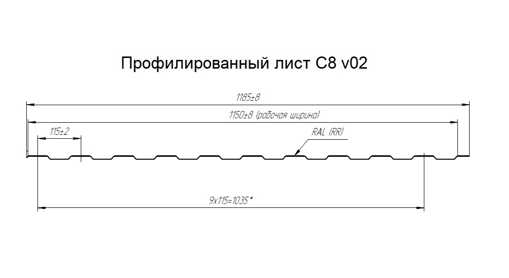 Парапетная крышка прямая 125, мм